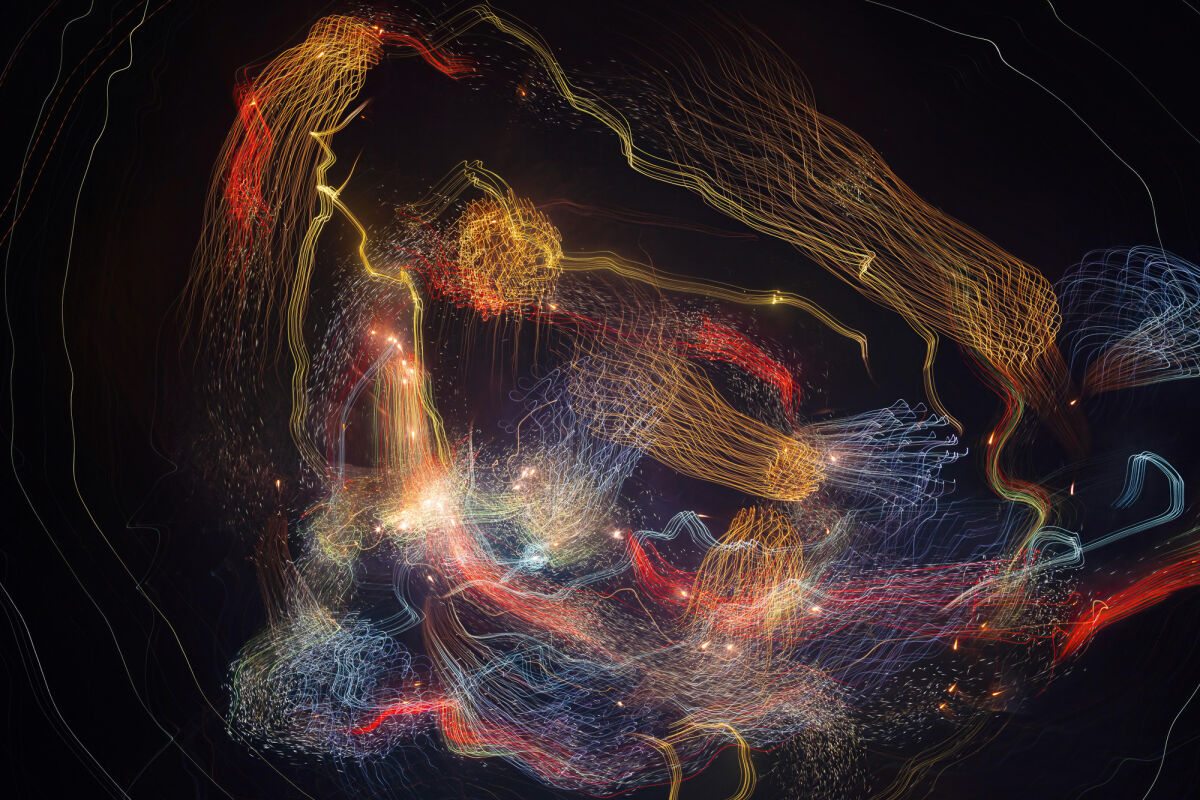 また、「アクション・ペインティング」が絵具の粘性や重力といった物理特性を媒介に、描きながら無意識と対話し、身体性を抽象作品へと昇華させたのに対し、「アクション・フォトグラフィ」は光の連続性と時間の伸長を媒介とします。デジタル特有の即時性を活かし、撮影と調整の反復を通じて無意識の美を取り込み、身体運動を抽象的な軌跡へと変換するのです。両者はメディアこそ違えど、「身体的行為と偶然性によって無意識の美を表出させる」という共通の哲学的基盤に立脚しています。すなわち「アクション・フォトグラフィ」は、アクション・ペインティングに対する、写真表現側からの現代的な応答に他なりません。