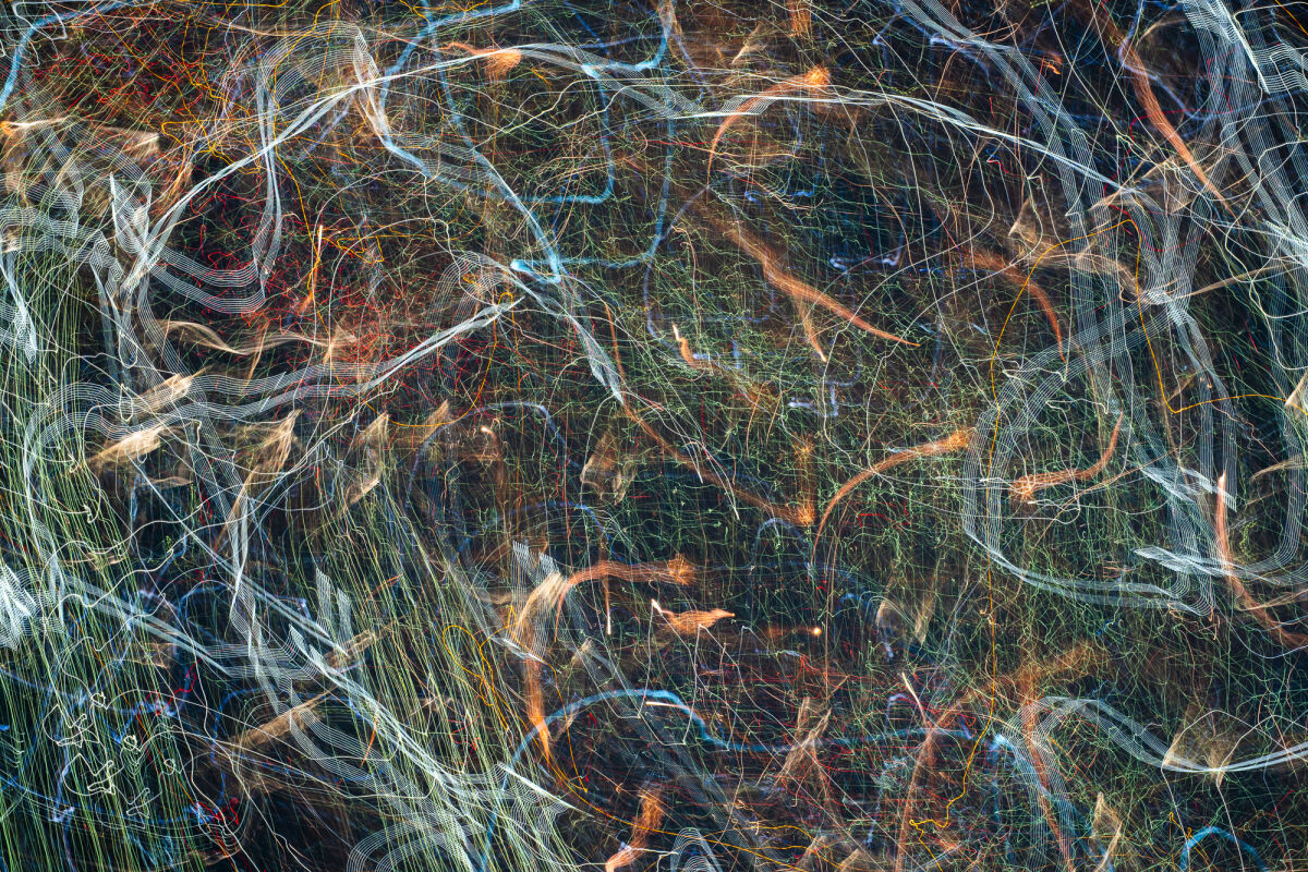 クリスマスライト(イルミネーション)や花火などの強い光、あるいはコントラストの強い風景をICMで撮影すると、光は「連続する軌跡」となり、鮮明な線として表現されます。光は時間軸に沿って引き延ばされ、その変化が詳細に記録されます。これは絵画に例えるなら、無数のペンを立て並べ、キャンバスを動かしてそれらに接触させることで描く行為に近いものです。すなわち「強い光のICM」とは、「描く写真」なのです。