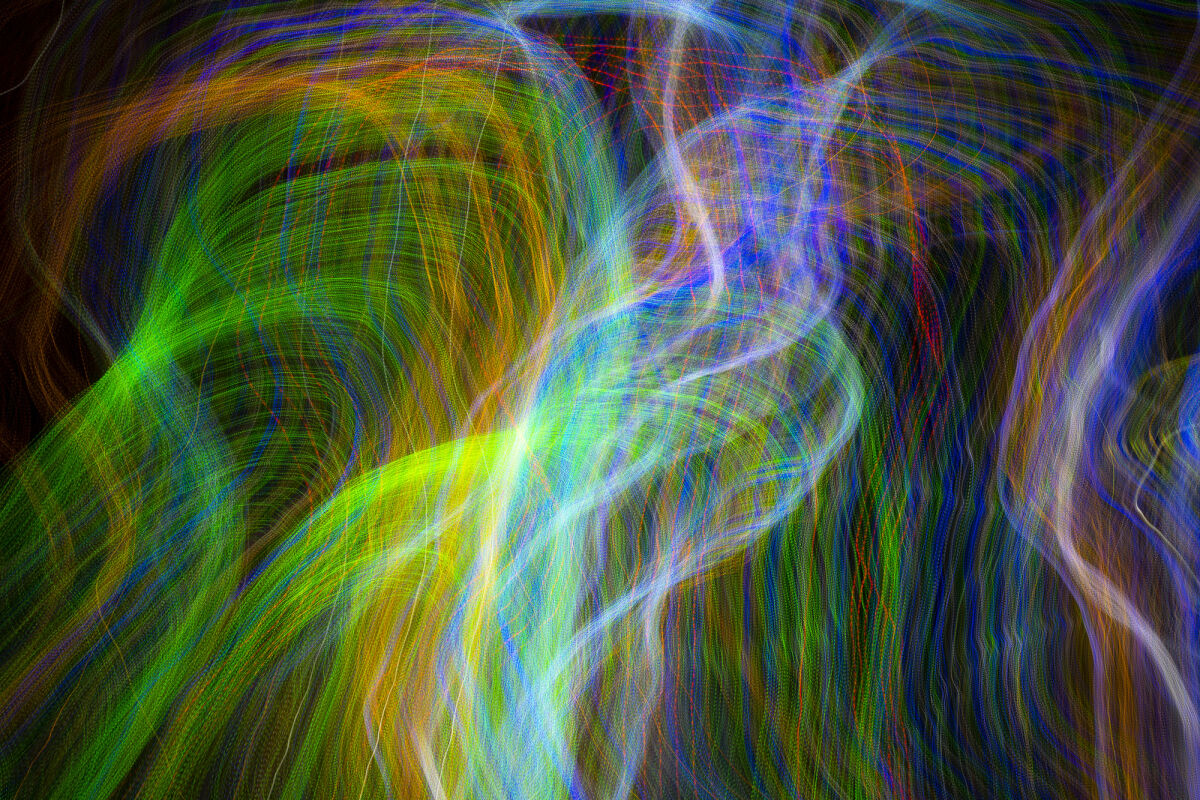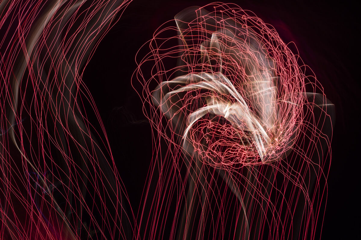 さらに、光のエネルギーと身体の動きが交錯し、相乗効果によって複雑さが増すと、宇宙や生命体を思わせる形が立ち現れます。偶然と必然、動きと時間、光と身体が重なり合うことで、写真はもはや単なる記録ではなく、描かれた「超現実の夢」として生成されるのです。