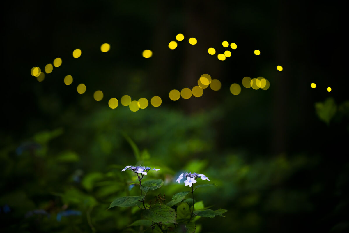 「ヒメボタル」は 廣池が10年以上取り組んでいる小さな蛍です。撮影を始めたきっかけは、夜の森に飛び交う光の美しさに魅了されたことでした。しかし次第に、ヒメボタルの写真には「写真とは何か」という概念に関わる大きな示唆が潜んでいると感じるようになりました。
